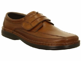 En mycket bred sko från Ara i brunt skinn med kardborreband. Lätt att komma i.