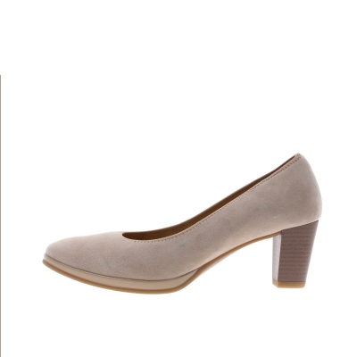 Pumps från Ara i ljusbeige mocka. Resårkant runt foten för bästa komfort och att den sluter åt. Klackhöjd ca 50 mm.