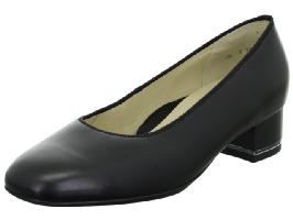 Pumps från Ara i svart skinn och skinnfoder. Tunn gummisula och fin ditalj i silver på klacken.