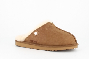 Fårskinnstoffel från Axelda i brun mocka med beige ull invändigt.Slip in modell med hård sula.