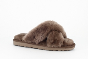 Fårskinnstoffel från Axelda, slip in modell med öppen tå. Hård sula under.