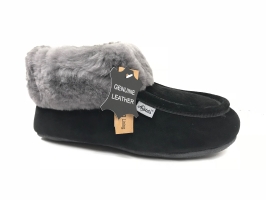 Svart Fårskinnstoffel. Dam 36-41 Halkfri sula under