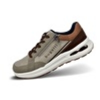 Promenadsko i brun/beige nyanser från Bugatti. Den har snörning och en dragkedja på utsidan. Uttagbara sulor med plats för egna inlägg, bred läst.
