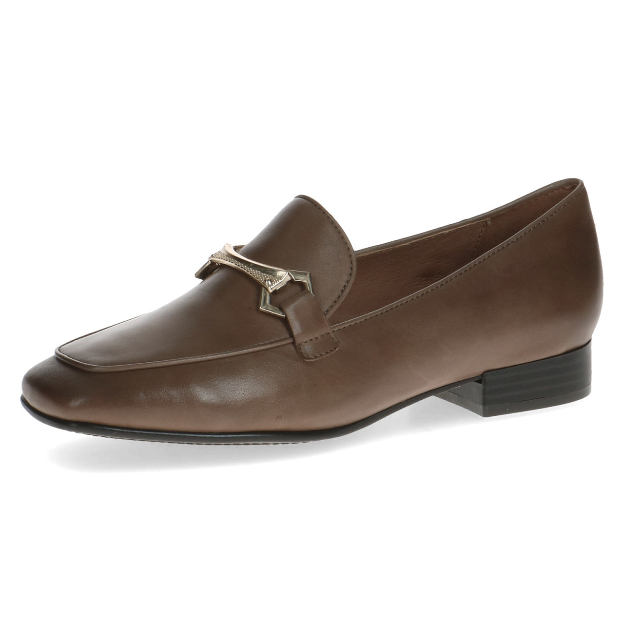 Loafer från Caprice i mjukt skinn med guldspänne över vristen, Mjuk, tunn och flexibel gummisula. Klackhöjd ca 1,5 cm.