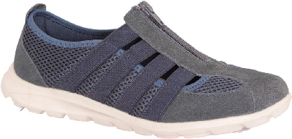 Luftig promenadsko i blå textil/mocka från CC Resort. Den har en ljus sula och dragkedja ovan, resårer som ger bra vidd på båda sidorna. Uttagbara sulor med plats för egna inlägg.