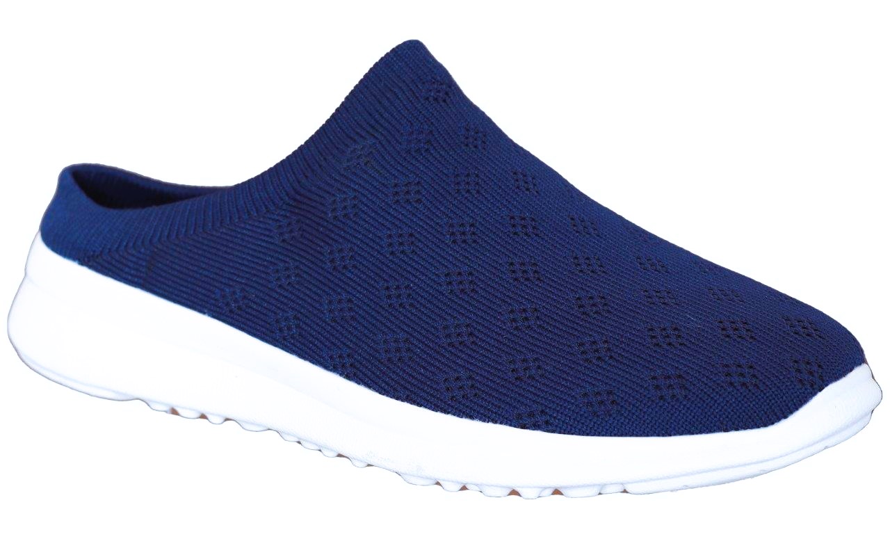 Slip in i blå textil och vit sula från CC Resort. Ovandelen i strechig textil och uttagbara sulor.