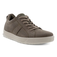 Promenadsko från Ecco i grågrön nubuk med ljus sula. Sko med snörning och löstagbar innesula med plats för egna inlägg.