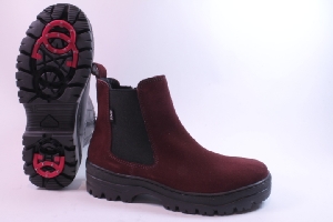 Lammullsfodrad varm känga från Ilves i bordoux mocka. Den har en resår på utsidan och dragkedja på insidan.En kraftig gummisula med två utfällbara broddar, en på klacken och en under sulan. Uttagbara sulor med plats för egna inlägg.
