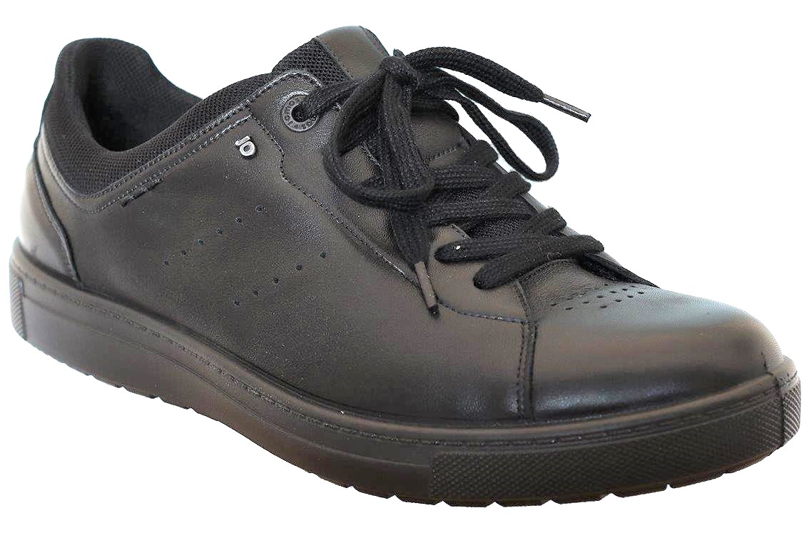 Promenadsko i svart skinn från Jomos. Den har en bred läst H-vidd och uttagbara sulor med plats för egna inlägg. Den har snörning och en dragkedja på insidan.