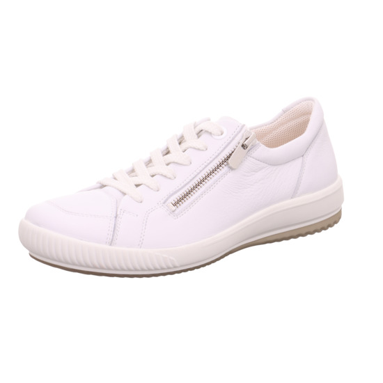 Promenadsko i vitt skinn från Legero. Den har snörning och en dragkedja på utsidan. Uttagbara sulor med plats för egna inlägg.