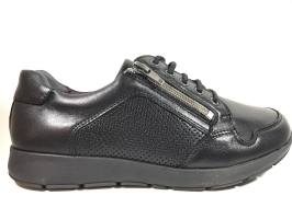 Promenadsko i svart skinn från New feet. Snörning och dragkedja, med stretch-skinn för extra comfort. Löstagbar innesula med plats för egna inlägg.