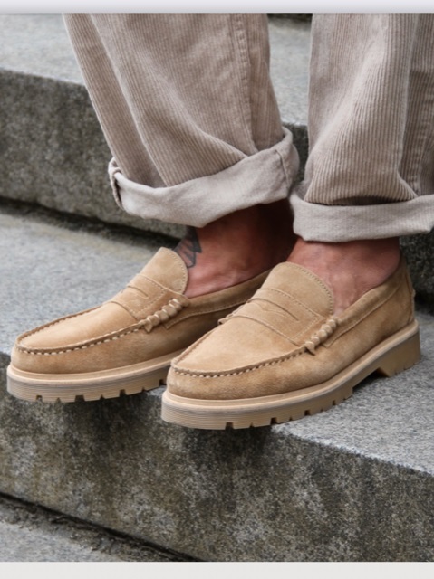 Promenadsko/loafer i beige mocka med mönstrad sula från Playboy.