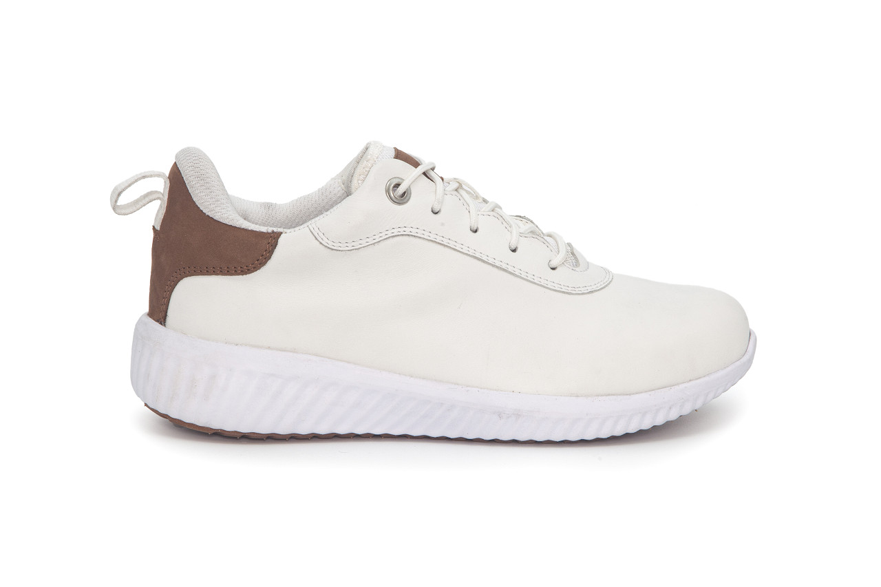 Promenadsko i vitt skinn med bruna ditaljer från Polecat, med snörning. Löstagbara innesulor med plats för egna inlägg.