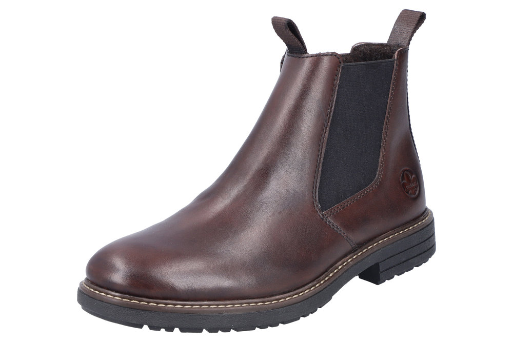Boots i brunt skinn från Rieker. Den har uttagbara sulor och en dragkedja på insidan. Fleecefodrad och med en slitsula i gummi.