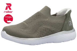 Rieker promenadsko, grön. Textil. Mjuk sula. Lätt att ta på med Riekers ready 2 go utan skohorn.