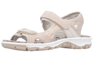 Sandal från Rieker i beige/rosa med vit sula. Ställbara remmar med kardborre ovan.