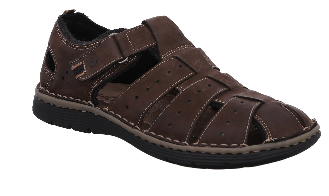 Sandal i brun mocka med hel tå och häl från Rohde. Knäppes med kardborre.