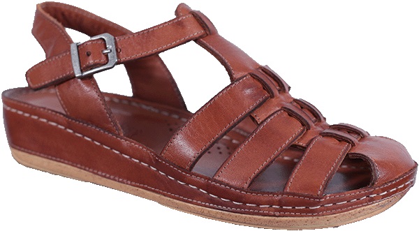 Sandal från Rosa Negra Comfort i brunt skinn med liten kilklack. Den har en hel tå och vristremmen justeras med ett spänne.