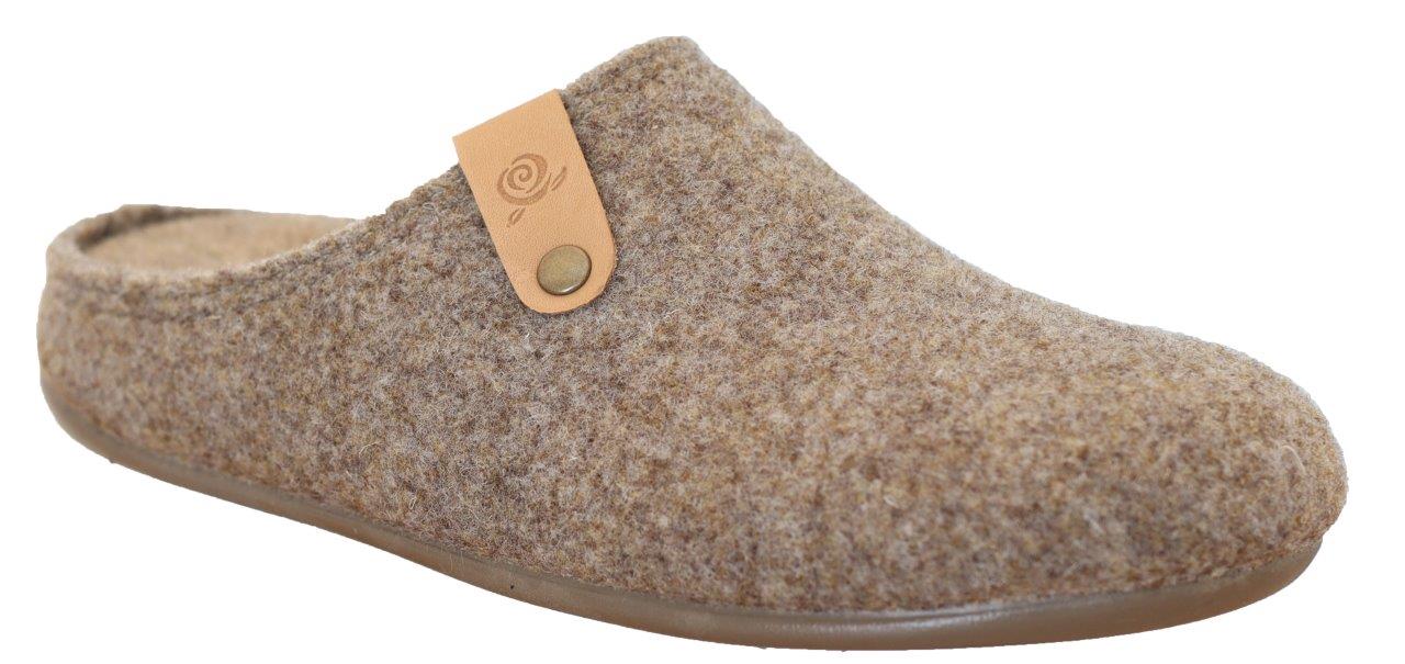 Toffla från Rosa Negra i en mörkbeige ton. Uttagbara sulor.