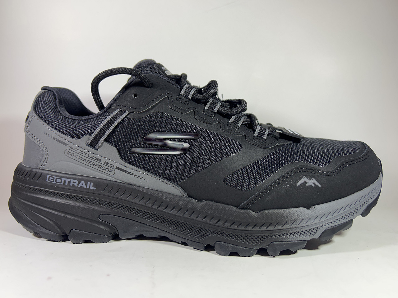 Snörsko från Skechers i textil ovandel med vätskydd. Mönstrad bra gummigreppsula för bästa grep. Även bälj mellan sko och plös för vattentätheten.
