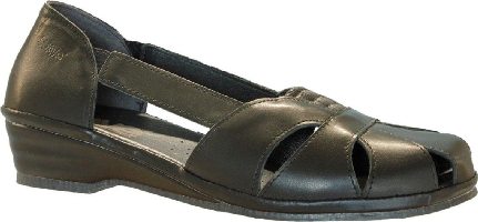 Lättare promenadsko från Suave i svart skinn. Bred läst och resår ovan.
