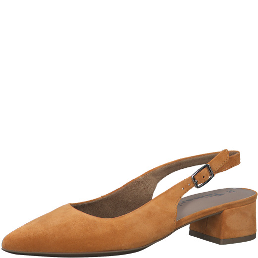 Sandalett i orange mocka från Tamaris, justerbar rem bak och 4 centimeter klack.