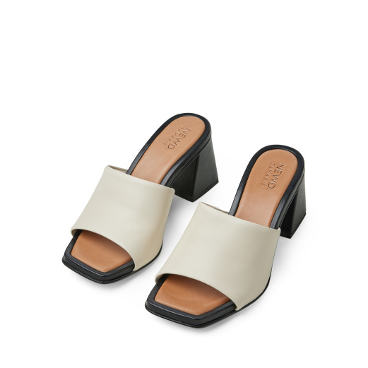 Slip-in på klossklack i beige skinn från Tamaris Newd. Klack och sula i svart skinn.
