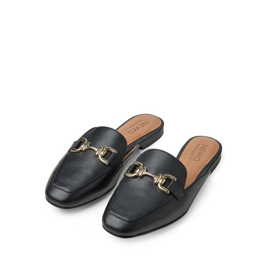 Slip-in från Tamaris i svart skinn och skinnfoder med dekorativa guld detaljer.