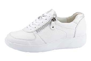 Promenadsko från Waldlaufer i beige skinn med vit sula. Snörning men även dragkedja för att slippa snöra varje gång. K-vidd, Extra bred. Skinnklädd även invändigt.
